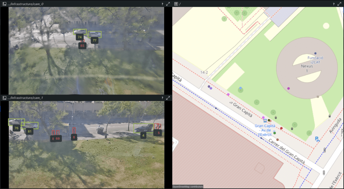 i2CAT’s core research focused on the development of a solution that uses Collective Perception techniques. This is a method for vehicles and roadside infrastructure to communicate and share information via Vehicle-to-Everything (V2X) communication. This allows a vehicle to extend its situational awareness beyond the range of its own onboard sensors.