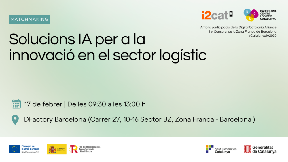 Matchmaking: AI solutions for innovation in the logistics sector i2CAT Research Centre and Barcelona-Catalunya Centre Logístic (BCL) are promoting an AI matchmaking session for...