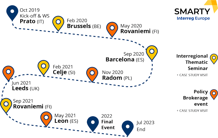 SMARTY is co-funded by the European Regional Development Fund (ERDF) under the umbrella of the European Union programme Interreg Europe with around 1.99 M EUR ERDF (2.42 M EUR Total Budget). The consortium came together in Prato in October for the project’s kick-off meeting, where the first actions were discussed, as well as the overall work plan, exchange of experience activities and communication activities. The next step will be the first Interregional Thematic Seminar, which will be held in Brussels, Belgium, in February 2020.